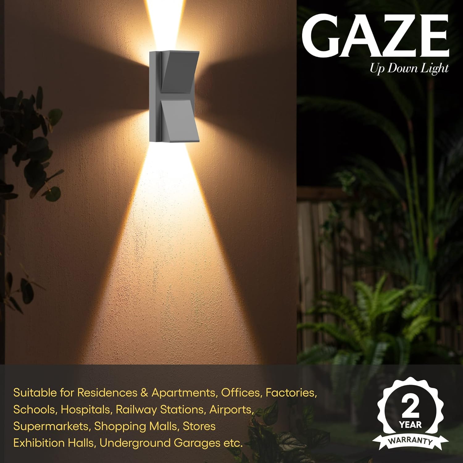 FYBROS Gaze 12W Up Down Light Outdoor Warm White White, Aluminum Casting Elevation Lights For Home Outdoor, Ip 64 Garden Lights Outdoor Waterproof, 6 W X 2
